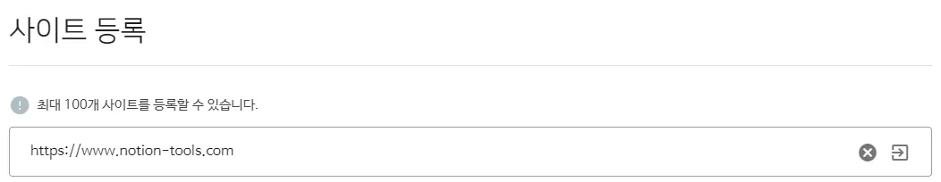 이곳에 URL를 입력해주세요 에 등록할 웹사이트를 주소를 입력해주세요.