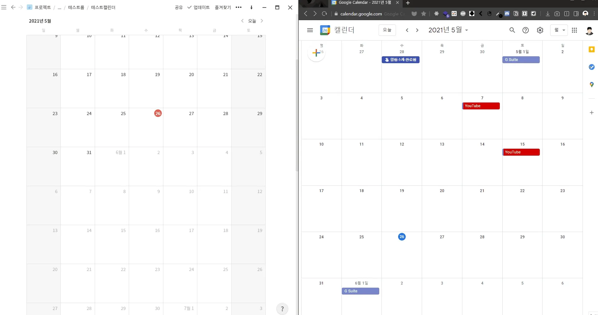 현재는 위 사진처럼 Notion 캘린더의 페이지를 구글 캘린더에 적용하고, 페이지가 변경되면 구글 캘린더에서도 이를 반영하는 정도까지 왔습니다.